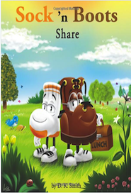 Sock ‘N Boots Share by D.K. Smith Sock ‘n Boots Share begins with a question…why should you share? Sock and Boots set off with two packed lunches to have a day of play at the park. After hours of summer fun in the sun, the hungry pair return to look for their lunch boxes on the picnic table where they left them. Surprise! Sock’s lunch has been finished off by birds, so only Boots’ lunch is left in his lunch box. In respons...