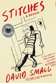 Stitches: A Memoir by David Small The story starts when the narrator is six years old and follows him into adulthood, with most of the story spent during his early adolescence. The youngest member of a silent and unhappy family, David is subjected to repeated x-rays to monitor sinus problems. When he develops cancer as a result of this procedure, he is operated on without being told what is wrong with him. The operation results in the l...